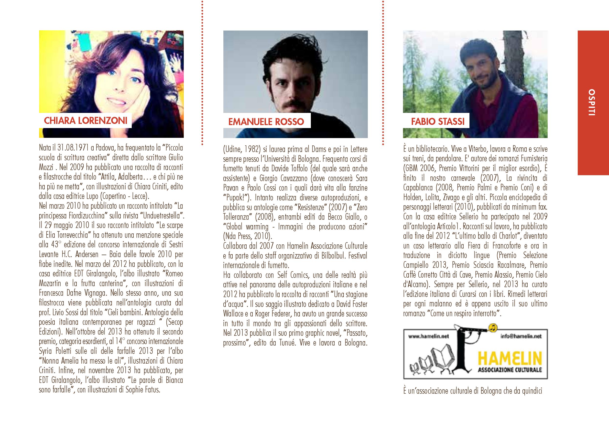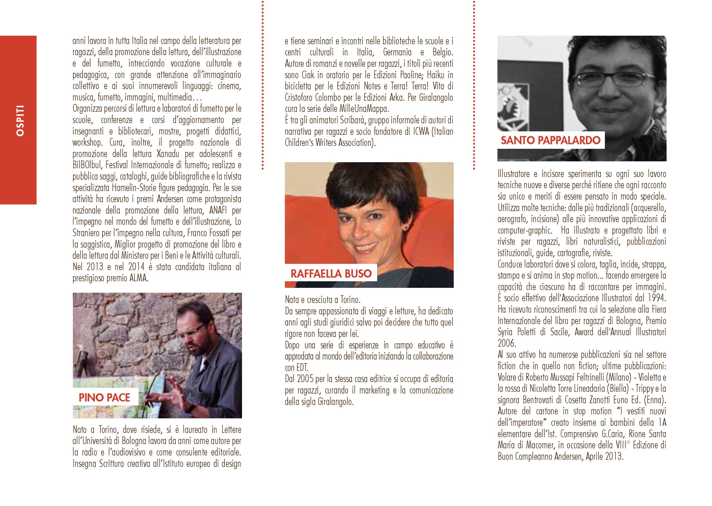 Gli altri laboratori inseriti nel Festival saranno curati da Chiara Lorenzoni, Carlo Carzan, Raffaella Buso e Pino Pace.