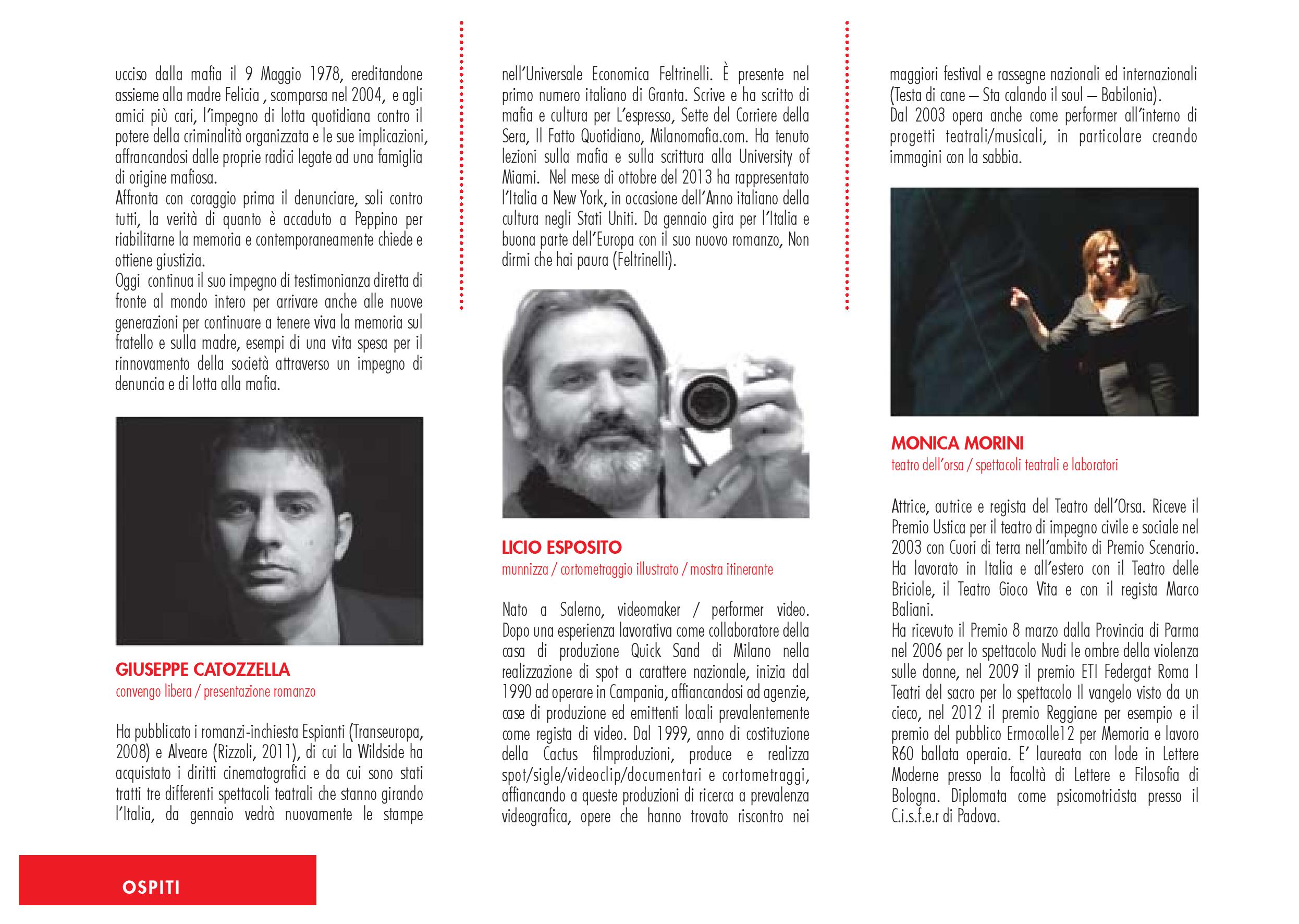 - Giovedì 13 Marzo ore 20 (Casa Gramsci – Ghilarza): “Un incontro con Peppino” Dialogo sulla legalità con Giovanni Impastato e Monica Morini (Teatro dell’Orsa)