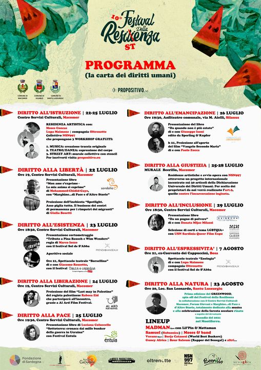“La scelta di focalizzare l’attenzione sul tema dei diritti in questo momento di fragilità mondiale, toccando argomenti fondamentali, tra cui pace, giustizia e legalità, immigrazione, liberazione, libertà d’espressione, emancipazione, diritti delle donne e della comunità LGBTQIA+, inclusione e rapporto con l’ecosistema è stata necessaria e ancor più significativa per noi poiché Macomer ospita l’unico Centro per il Rimpatrio (CPR) in Sardegna.